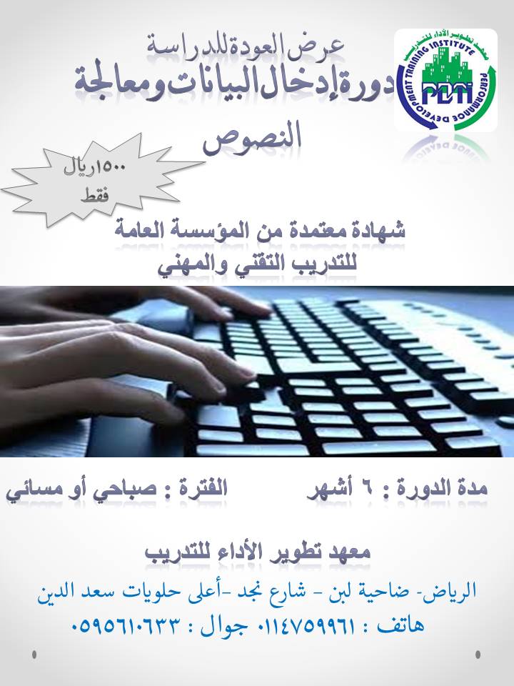 دورة إدخال البيانات ومعالجة النصوص مدتها ( ستة أشهر )